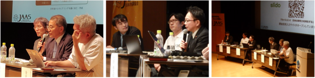 冒頭に三輪(国立精神・神経医療研究センター/JAAS)が問題意識を共有し、続いて古川哲史先生(東京科学大学)から、都心型大学の立場から、大学の将来像としてScience Tokyo(東京科学大学)の「Visionary Initiatives(VIs)」と「国際医工共創研究院(医工研)」の2本柱が紹介されました。次に磯谷桂介先生(中部大学)からは、地方都市型大学の立場から、研究力再生を“トップ層だけの強化”に閉じず、地域に点在する特色ある大学・研究者を活かして大学群全体の「研究活動の厚み」を回復すべき、という提言が示されました。具体策として、国際卓越研究大学やJ-PEAKSの次に位置する“中間層”の底上げ、点在する優れた研究者を組織的に支える仕組み、そして大学共同利用機関がハブとなる機関間連携の本格化が論点となりました。